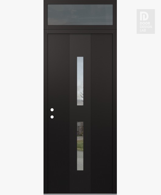 Modern Steel Front Door DIAMOND A6 36" X 96" BLACK/BLACK CLEAR GLASS PANEL BLACK LHI WITH TRANSOM MIRRORED GLASS