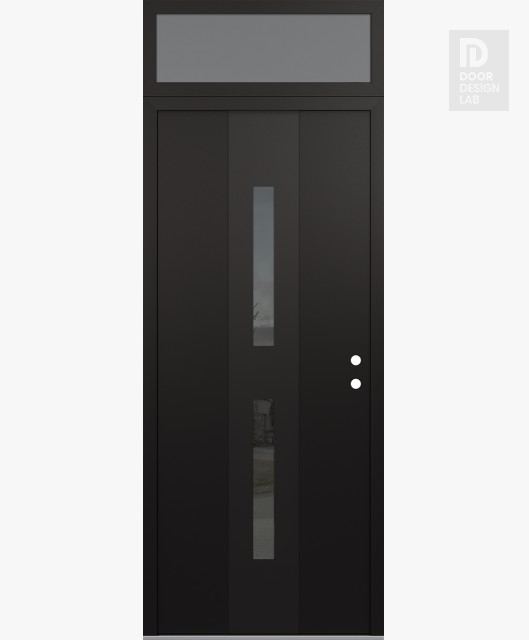 Modern Steel Front Door DIAMOND A6 36" X 96" BLACK/BLACK MIRRORED GLASS PANEL BLACK RHI WITH TRANSOM FROSTED GLASS