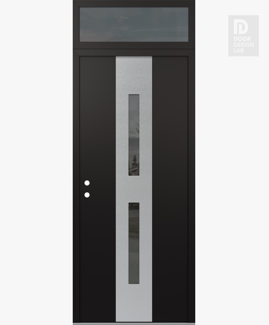 Modern Steel Front Door DIAMOND A6 36" X 96" BLACK/BLACK MIRRORED GLASS PANEL STAINLESS STEEL LHI WITH TRANSOM MIRRORED GLASS
