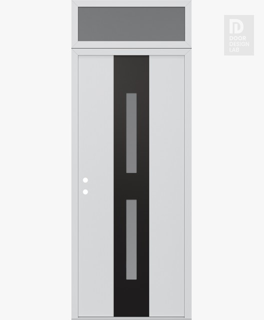 Modern Steel Front Door DIAMOND A6 36" X 96" BLACK/WHITE FROSTED GLASS PANEL BLACK LHI WITH TRANSOM FROSTED GLASS