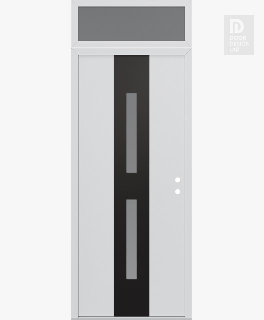 Modern Steel Front Door DIAMOND A6 36" X 96" BLACK/WHITE FROSTED GLASS PANEL BLACK RHI WITH TRANSOM FROSTED GLASS