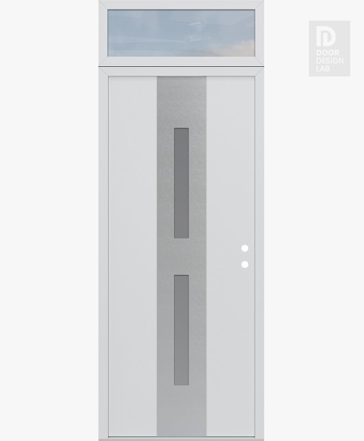 Modern Steel Front Door DIAMOND A6 36" X 96" BLACK/WHITE FROSTED GLASS PANEL STAINLESS STEEL RHI WITH TRANSOM CLEAR GLASS