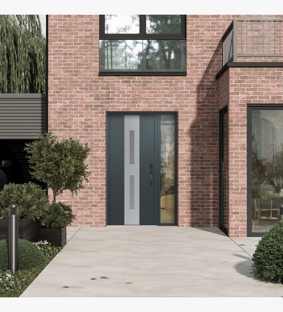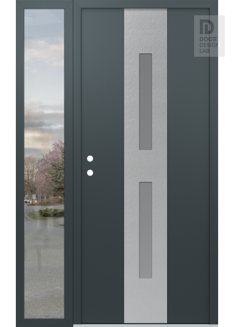 Modern Steel Front Door DIAMOND A6 48" X 80" ANTHRACITE/ANTHRACITE FROSTED GLASS PANEL STAINLESS STEEL LHI WITH SIDELITE CLEAR GLASS