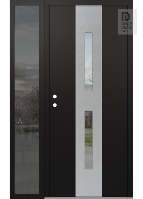 Modern Steel Front Door DIAMOND A6 48" X 80" BLACK/BLACK CLEAR GLASS PANEL STAINLESS STEEL LHI WITH SIDELITE MIRRORED GLASS