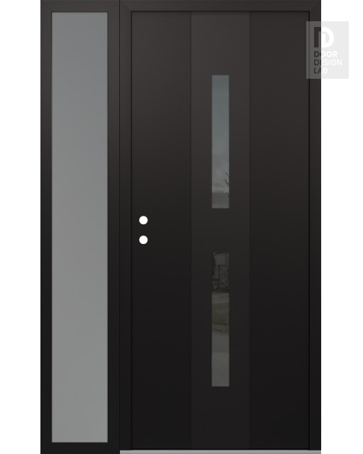 Modern Steel Front Door DIAMOND A6 48" X 80" BLACK/BLACK MIRRORED GLASS PANEL BLACK LHI WITH SIDELITE FROSTED GLASS