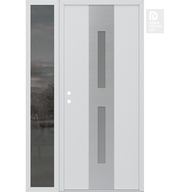Modern Steel Front Door DIAMOND A6 48" X 80" BLACK/WHITE FROSTED GLASS PANEL STAINLESS STEEL LHI WITH SIDELITE MIRRORED GLASS