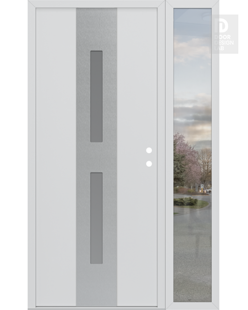 Modern Steel Front Door DIAMOND A6 48" X 80" BLACK/WHITE FROSTED GLASS PANEL STAINLESS STEEL RHI WITH SIDELITE CLEAR GLASS