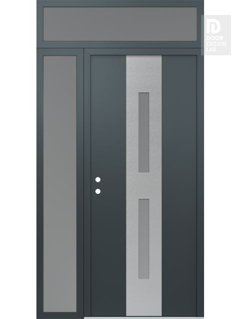 Modern Steel Front Door DIAMOND A6 48" X 96" ANTHRACITE/ANTHRACITE FROSTED GLASS PANEL STAINLESS STEEL LHI WITH SIDELITE AND TRANSOM FROSTED GLASS