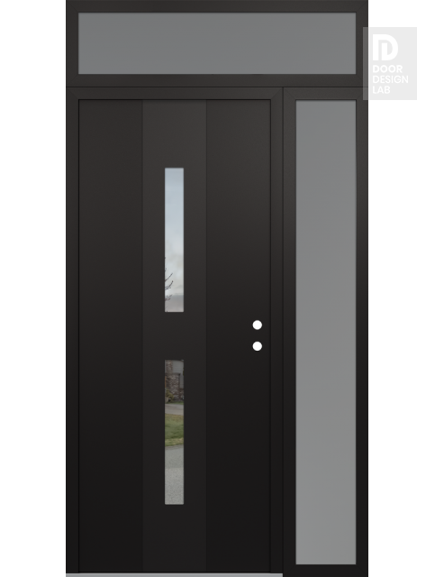 Modern Steel Front Door DIAMOND A6 48" X 96" BLACK/BLACK CLEAR GLASS PANEL BLACK RHI WITH SIDELITE AND TRANSOM FROSTED GLASS