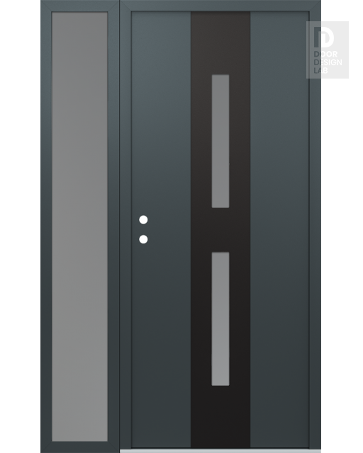 Modern Steel Front Door DIAMOND A6 50" X 80" ANTHRACITE/ANTHRACITE FROSTED GLASS PANEL BLACK LHI WITH SIDELITE FROSTED GLASS