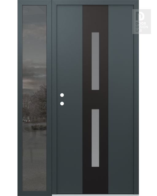 Modern Steel Front Door DIAMOND A6 50" X 80" ANTHRACITE/ANTHRACITE FROSTED GLASS PANEL BLACK LHI WITH SIDELITE MIRRORED GLASS