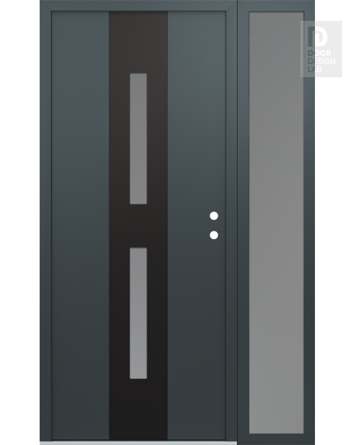 Modern Steel Front Door DIAMOND A6 50" X 80" ANTHRACITE/ANTHRACITE FROSTED GLASS PANEL BLACK RHI WITH SIDELITE FROSTED GLASS