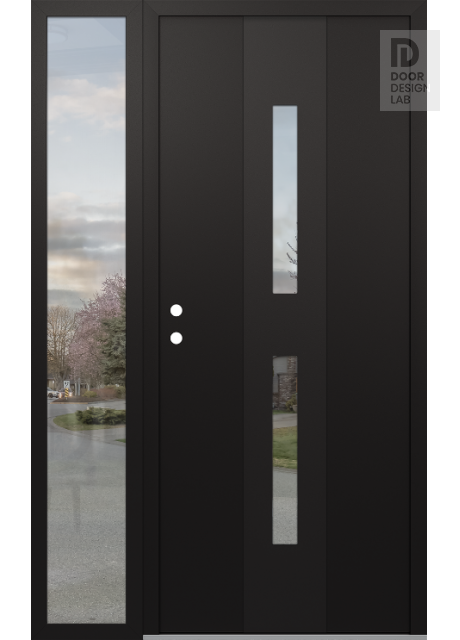 Modern Steel Front Door DIAMOND A6 50" X 80" BLACK/BLACK CLEAR GLASS PANEL BLACK LHI WITH SIDELITE CLEAR GLASS