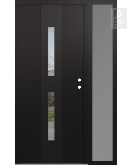 Modern Steel Front Door DIAMOND A6 50" X 80" BLACK/BLACK CLEAR GLASS PANEL BLACK RHI WITH SIDELITE FROSTED GLASS