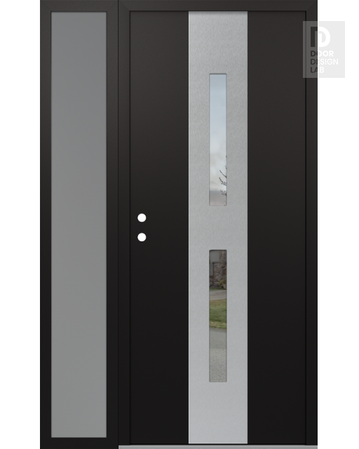 Modern Steel Front Door DIAMOND A6 50" X 80" BLACK/BLACK CLEAR GLASS PANEL STAINLESS STEEL LHI WITH SIDELITE FROSTED GLASS