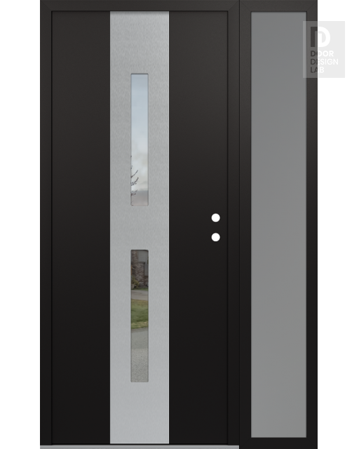 Modern Steel Front Door DIAMOND A6 50" X 80" BLACK/BLACK CLEAR GLASS PANEL STAINLESS STEEL RHI WITH SIDELITE FROSTED GLASS