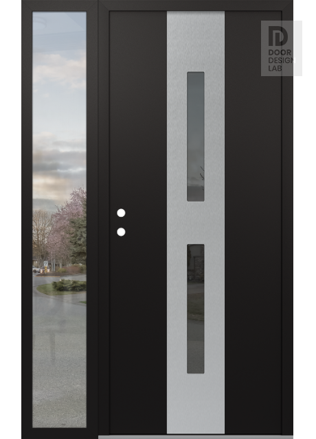Modern Steel Front Door DIAMOND A6 50" X 80" BLACK/BLACK MIRRORED GLASS PANEL STAINLESS STEEL LHI WITH SIDELITE CLEAR GLASS