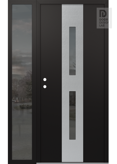 Modern Steel Front Door DIAMOND A6 50" X 80" BLACK/BLACK MIRRORED GLASS PANEL STAINLESS STEEL LHI WITH SIDELITE MIRRORED GLASS