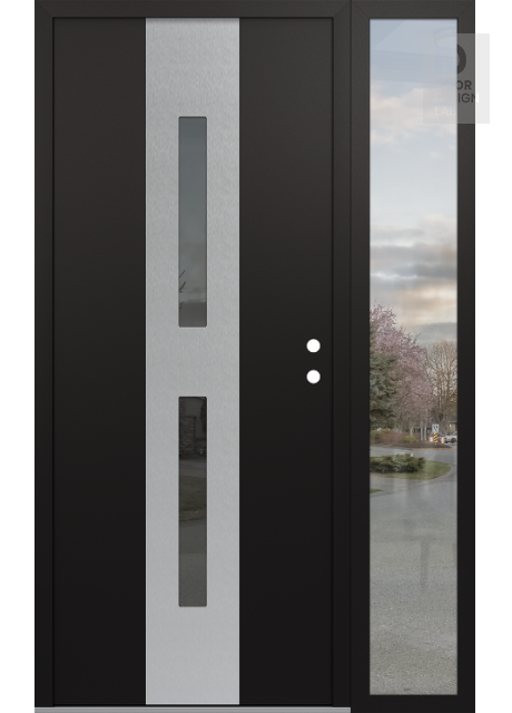Modern Steel Front Door DIAMOND A6 50" X 80" BLACK/BLACK MIRRORED GLASS PANEL STAINLESS STEEL RHI WITH SIDELITE CLEAR GLASS
