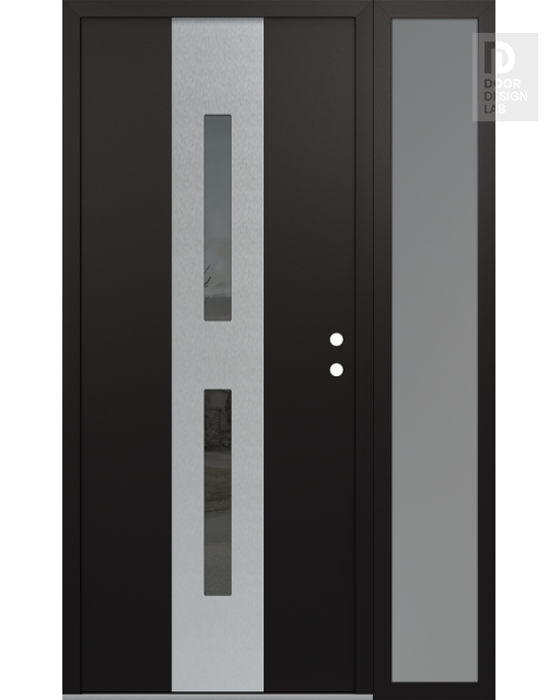 Modern Steel Front Door DIAMOND A6 50" X 80" BLACK/BLACK MIRRORED GLASS PANEL STAINLESS STEEL RHI WITH SIDELITE FROSTED GLASS