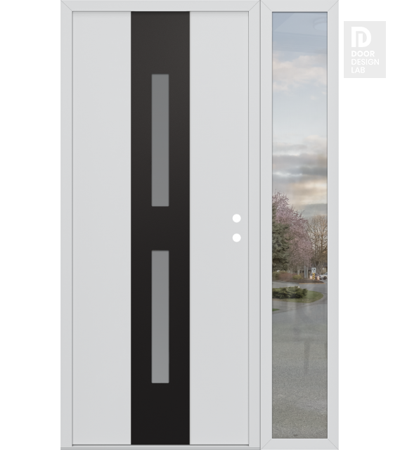 Modern Steel Front Door DIAMOND A6 50" X 80" BLACK/WHITE FROSTED GLASS PANEL BLACK RHI WITH SIDELITE CLEAR GLASS