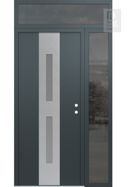 Modern Steel Front Door DIAMOND A6 50" X 96" ANTHRACITE/ANTHRACITE FROSTED GLASS PANEL STAINLESS STEEL RHI WITH SIDELITE AND TRANSOM MIRRORED GLASS