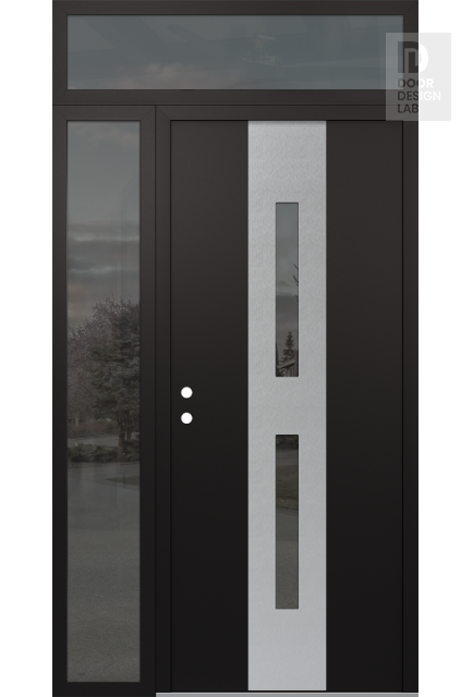 Modern Steel Front Door DIAMOND A6 50" X 96" BLACK/BLACK MIRRORED GLASS PANEL STAINLESS STEEL LHI WITH SIDELITE AND TRANSOM MIRRORED GLASS
