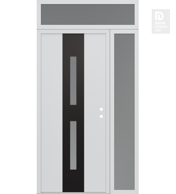 Modern Steel Front Door DIAMOND A6 50" X 96" BLACK/WHITE FROSTED GLASS PANEL BLACK RHI WITH SIDELITE AND TRANSOM FROSTED GLASS