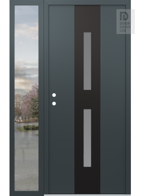 Modern Steel Front Door DIAMOND A6 52" X 80" ANTHRACITE/ANTHRACITE FROSTED GLASS PANEL BLACK LHI WITH SIDELITE CLEAR GLASS