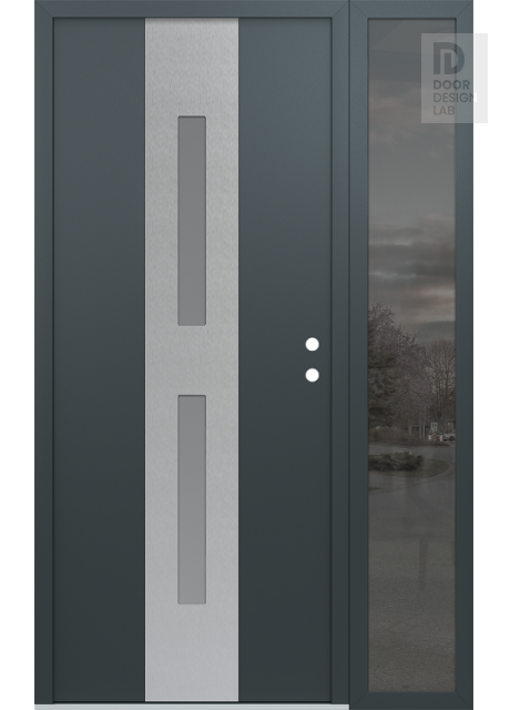 Modern Steel Front Door DIAMOND A6 52" X 80" ANTHRACITE/ANTHRACITE FROSTED GLASS PANEL STAINLESS STEEL RHI WITH SIDELITE MIRRORED GLASS