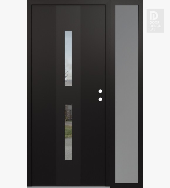 Modern Steel Front Door DIAMOND A6 52" X 80" BLACK/BLACK CLEAR GLASS PANEL BLACK RHI WITH SIDELITE FROSTED GLASS