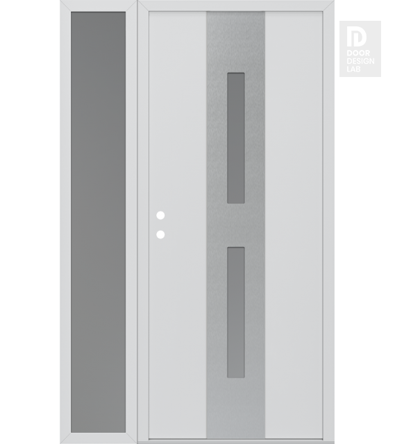 Modern Steel Front Door DIAMOND A6 52" X 80" BLACK/WHITE FROSTED GLASS PANEL STAINLESS STEEL LHI WITH SIDELITE FROSTED GLASS