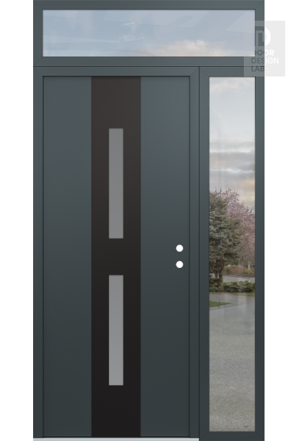 Modern Steel Front Door DIAMOND A6 52" X 96" ANTHRACITE/ANTHRACITE FROSTED GLASS PANEL BLACK RHI WITH SIDELITE AND TRANSOM CLEAR GLASS