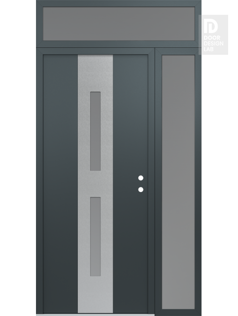 Modern Steel Front Door DIAMOND A6 52" X 96" ANTHRACITE/ANTHRACITE FROSTED GLASS PANEL STAINLESS STEEL RHI WITH SIDELITE AND TRANSOM FROSTED GLASS