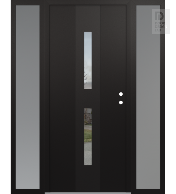 Modern Steel Front Door DIAMOND A6 60" X 80" BLACK/BLACK CLEAR GLASS PANEL BLACK RHI WITH 2 SIDELITES FROSTED GLASS