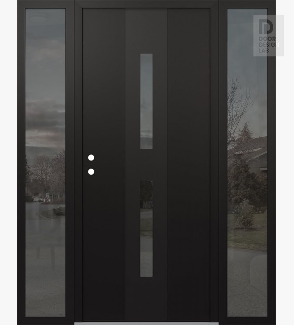 Modern Steel Front Door DIAMOND A6 60" X 80" BLACK/BLACK MIRRORED GLASS PANEL BLACK LHI WITH 2 SIDELITES MIRRORED GLASS