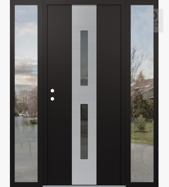 Modern Steel Front Door DIAMOND A6 60" X 80" BLACK/BLACK MIRRORED GLASS PANEL STAINLESS STEEL LHI WITH 2 SIDELITES CLEAR GLASS