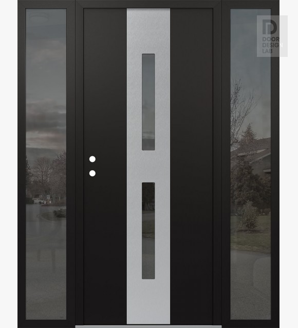 Modern Steel Front Door DIAMOND A6 60" X 80" BLACK/BLACK MIRRORED GLASS PANEL STAINLESS STEEL LHI WITH 2 SIDELITES MIRRORED GLASS