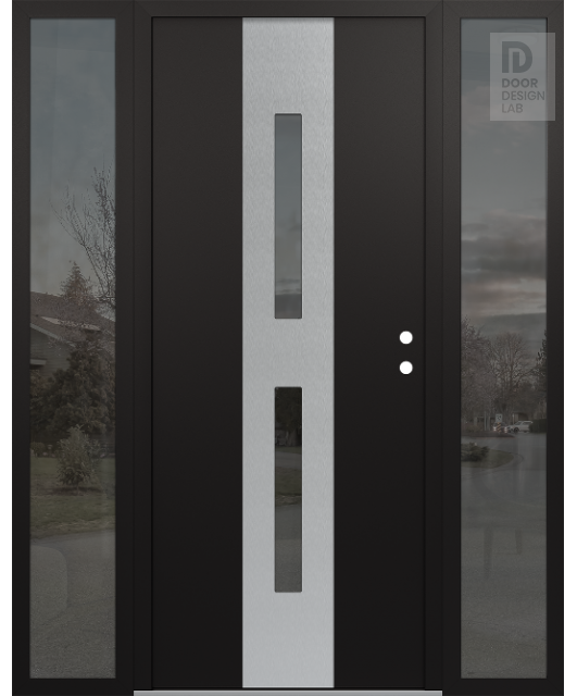 Modern Steel Front Door DIAMOND A6 60" X 80" BLACK/BLACK MIRRORED GLASS PANEL STAINLESS STEEL RHI WITH 2 SIDELITES MIRRORED GLASS