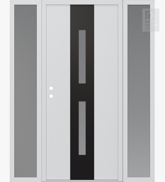 Modern Steel Front Door DIAMOND A6 60" X 80" BLACK/WHITE FROSTED GLASS PANEL BLACK LHI WITH 2 SIDELITES FROSTED GLASS