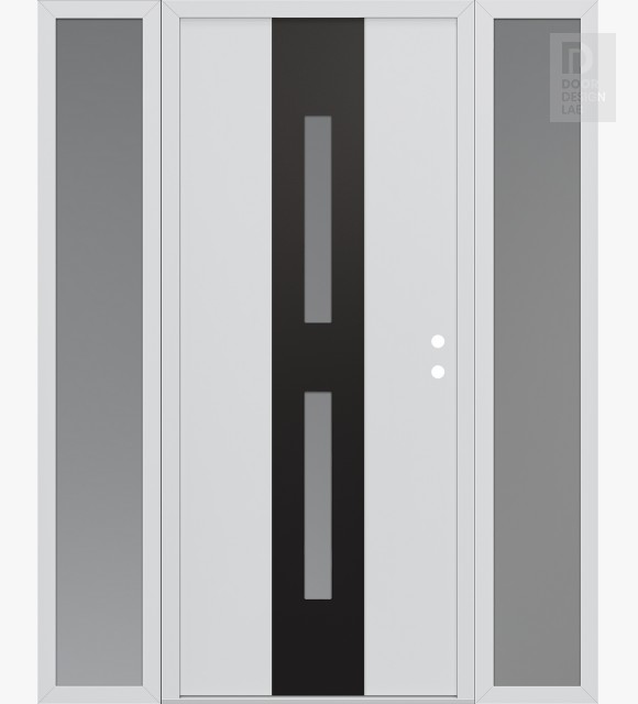 Modern Steel Front Door DIAMOND A6 60" X 80" BLACK/WHITE FROSTED GLASS PANEL BLACK RHI WITH 2 SIDELITES FROSTED GLASS