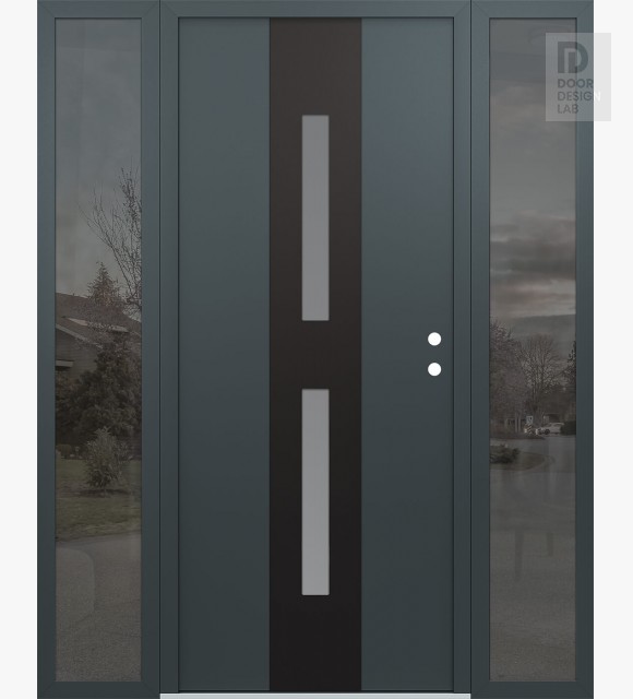 Modern Steel Front Door DIAMOND A6 64" X 80" ANTHRACITE/ANTHRACITE FROSTED GLASS PANEL BLACK RHI WITH 2 SIDELITES MIRRORED GLASS
