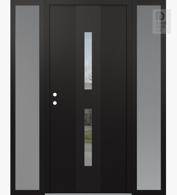 Modern Steel Front Door DIAMOND A6 64" X 80" BLACK/BLACK CLEAR GLASS PANEL BLACK LHI WITH 2 SIDELITES FROSTED GLASS