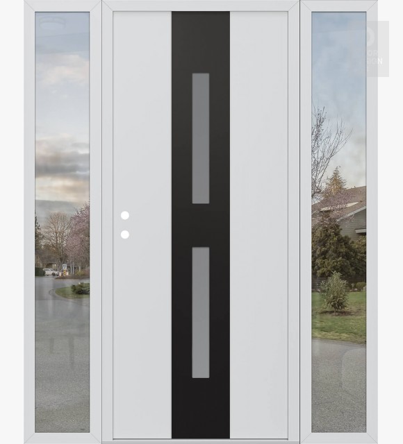Modern Steel Front Door DIAMOND A6 64" X 80" BLACK/WHITE FROSTED GLASS PANEL BLACK LHI WITH 2 SIDELITES CLEAR GLASS