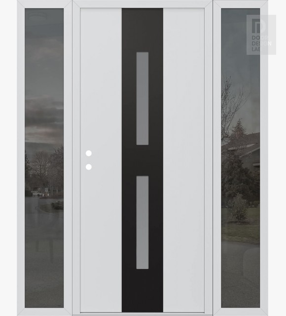 Modern Steel Front Door DIAMOND A6 64" X 80" BLACK/WHITE FROSTED GLASS PANEL BLACK LHI WITH 2 SIDELITES MIRRORED GLASS