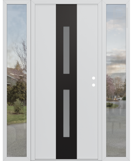 Modern Steel Front Door DIAMOND A6 64" X 80" BLACK/WHITE FROSTED GLASS PANEL BLACK RHI WITH 2 SIDELITES CLEAR GLASS