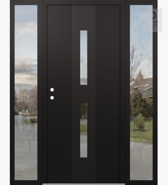 Modern Steel Front Door DIAMOND A6 68" X 80" BLACK/BLACK CLEAR GLASS PANEL BLACK LHI WITH 2 SIDELITES CLEAR GLASS