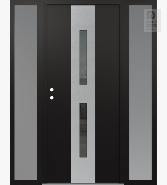 Modern Steel Front Door DIAMOND A6 68" X 80" BLACK/BLACK MIRRORED GLASS PANEL STAINLESS STEEL LHI WITH 2 SIDELITES FROSTED GLASS