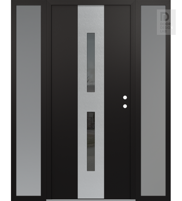 Modern Steel Front Door DIAMOND A6 68" X 80" BLACK/BLACK MIRRORED GLASS PANEL STAINLESS STEEL RHI WITH 2 SIDELITES FROSTED GLASS