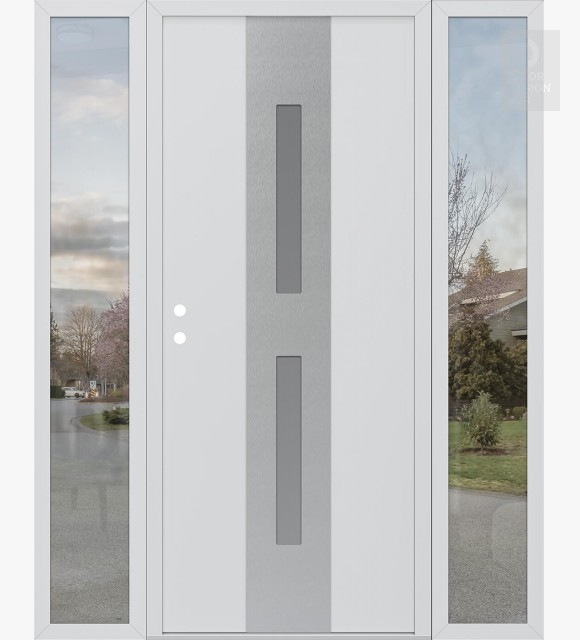 Modern Steel Front Door DIAMOND A6 68" X 80" BLACK/WHITE FROSTED GLASS PANEL STAINLESS STEEL LHI WITH 2 SIDELITES CLEAR GLASS